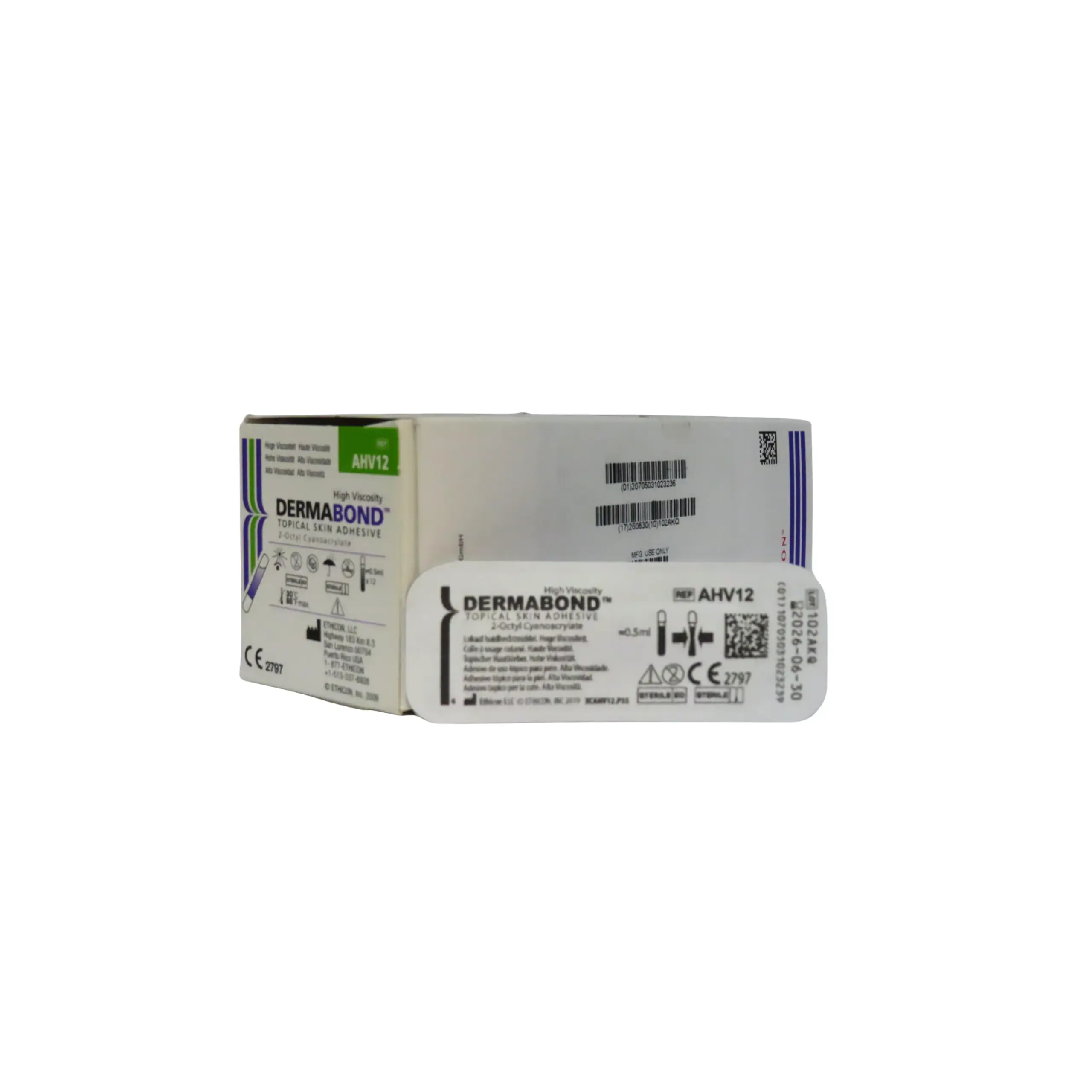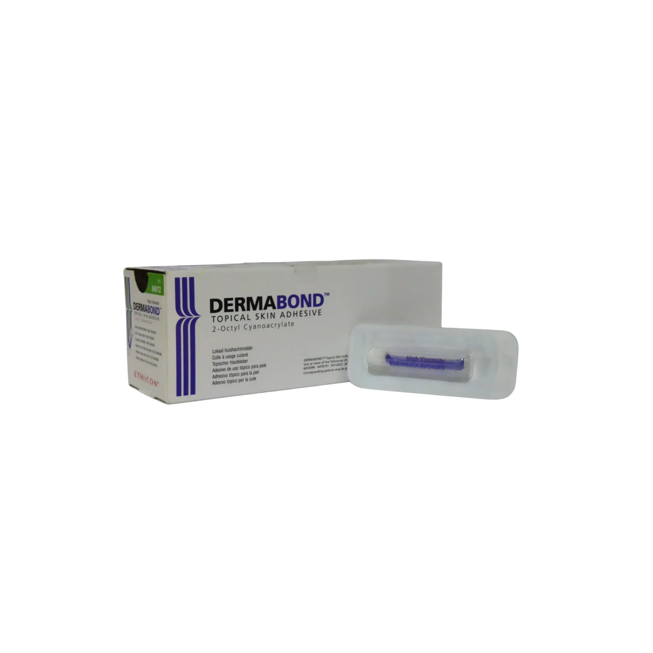 Adhesivo tópico Dermabond de alta viscosidad indicado para mantener cerrados los bordes fácilmente aproximables de la piel de heridas causadas por incisiones quirúrgicas, punciones derivadas de cirugía mínimamente invasiva y laceraciones sencillas causadas por traumatismo.