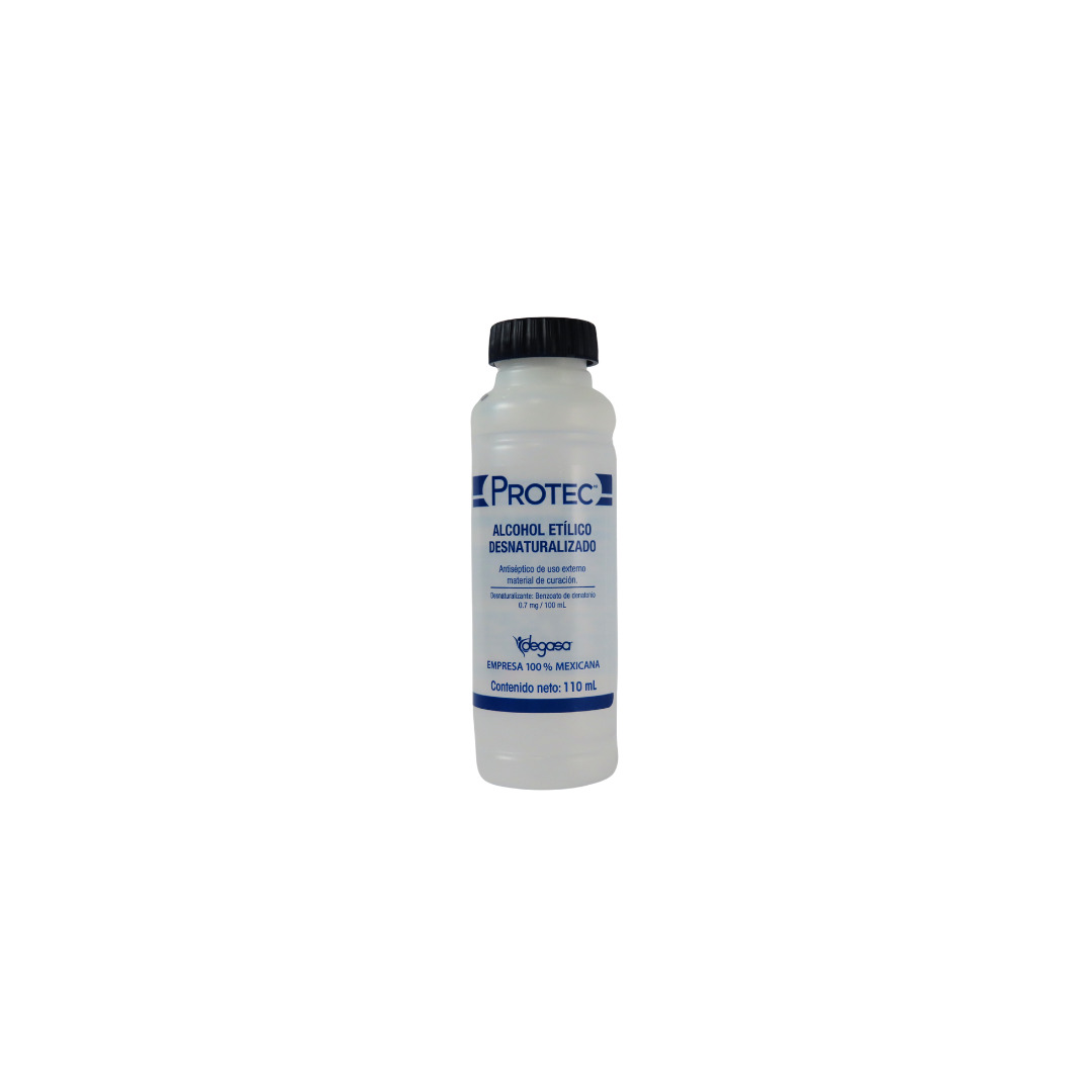 Alcohol Etílico Desnaturalizado Protec, un antiséptico de uso externo esencial para la desinfección y la limpieza de material de curación.