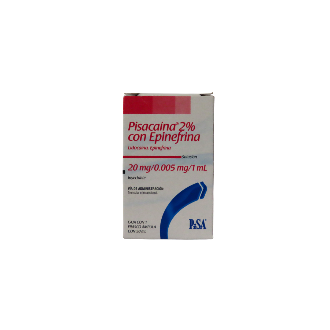 Pisacaína 2% con Epinefrina es una solución inyectable que contiene Clorhidrato de Lidocaína (20 mg/ml) junto con Epinefrina (0.005 mg/ml). La Epinefrina actúa como un vasoconstrictor, lo que prolonga la duración del efecto anestésico y ayuda a reducir el sangrado local. El frasco ámpula contiene 50 ml de solución y es fabricado por PISA, garantizando la calidad y esterilidad necesarias para su aplicación clínica segura en diversos procedimientos médicos y dentales.