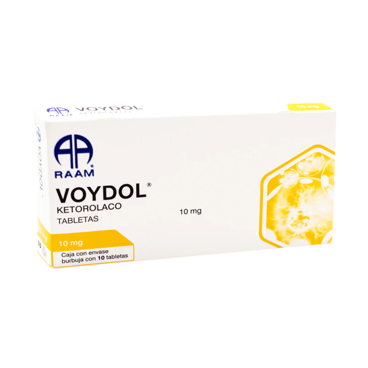 Ketorolaco 10 mg Voydol de Laboratorios RAAM en caja con 10 tabletas. Potente analgésico y antiinflamatorio indicado para el tratamiento del dolor moderado a intenso. Compra aquí.